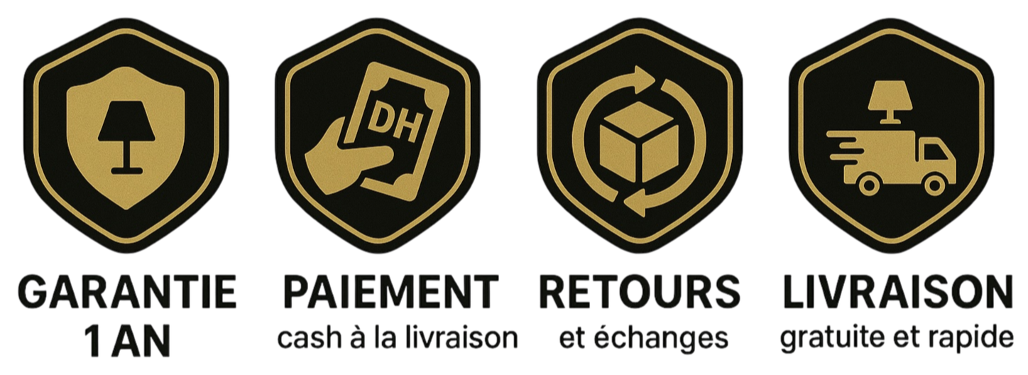 Ce produit luminaire est emballé en carton et livré à domicile partout au Maroc sous 72 heures.
